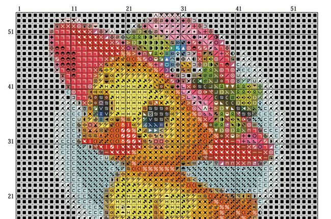 මෙම නිර්මාණය අඟල් 4.0 x 3.9 ප්රමාණයේ නිර්මාණයකි. එහෙත් ඔබට කැමැති ප්රමාණයට සකසාගත හැකියි. ඔබ අඟලට කොටු 14ක් ඇති අයිඩා රෙද්ද භාවිත කරන්නේ නම් හෝ අඟලට කොටු දහයක් හෝ 11ක් ඇති රෙදි භාවිත කරන්නේ නම් නිර්මාණයේ ප්රමාණය තව විශාල වේ. ඒ නිසා රෙද්දේ ඇති අඟලට කොටු ප්රමාණය අනුව නිර්මාණයේ ප්රමාණය වෙනස් වේ. කෙසේ වෙතත් නිර්මාණය රාමුකර ගැනීමට අවශ්ය ලෙස ඉඩ තබා රෙදි කොටස කපාගත යුතුයි. ඒ සඳහා වටේට අඟල් 2ක් හෝ 3ක් ඉඩ තබා රෙදි කොටස කපාගන්න. නැත්නම් නිර්මාණය මැසුවාට පසු රෙදි කොටස කපා ගන්න. කොටු 10න් 10ට නූල් ඇදගැනීමෙන් මැසීම පහසු වේ. කොටු ගණන් කර මසන්න. නැත්නම් නිර්මාණය හරි මැද සිට මැසීම අරඹන්න. රෙද්දේ අඟලට ඇති කොටු ප්රමාණය අනුව භාවිත කළ යුතු නූල් පොටවල් ප්රමාණය ද වෙනස් වේ. අඟලට කොටු 14ක් නම් නූල් පොටවල් 2ක් සෑහේ. අඟලට කොටු 11ක් නම් නූල් පොටවල් 4ක් හෝ 6ම භාවිත කරන්න.