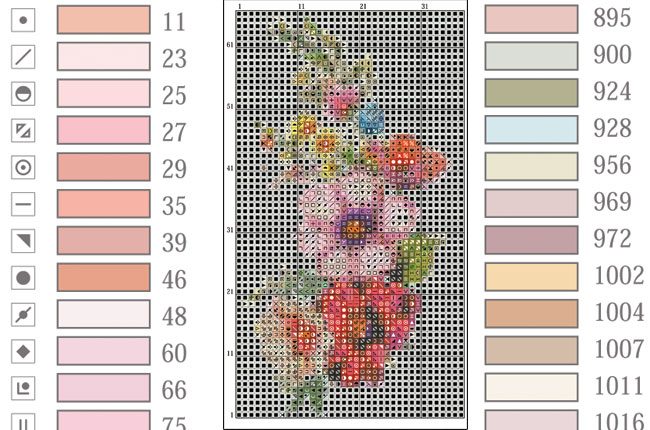 මෙම නිර්මාණය අඟල් 2.7 x 4.8 ප්රමාණයේ නිර්මාණයකි. එහෙත් ඔබට කැමැති ප්රමාණයට සකසාගත හැකියි. ඔබ අඟලට කොටු 14ක් ඇති අයිඩා රෙද්ද භාවිත කරන්නේ නම් හෝ අඟලට කොටු දහයක් හෝ 11ක් ඇති රෙදි භාවිත කරන්නේ නම් නිර්මාණයේ ප්රමාණය තව විශාල වේ. ඒ නිසා රෙද්දේ ඇති අඟලට කොටු ප්රමාණය අනුව නිර්මාණයේ ප්රමාණය වෙනස් වේ. කෙසේ වෙතත් නිර්මාණය රාමුකර ගැනීමට අවශ්ය ලෙස ඉඩ තබා රෙදි කොටස කපාගත යුතුයි. ඒ සඳහා වටේට අඟල් 2ක් හෝ 3ක් ඉඩ තබා රෙදි කොටස කපාගන්න. නැත්නම් නිර්මාණය මැසුවාට පසු රෙදි කොටස කපා ගන්න. කොටු 10න් 10ට නූල් ඇදගැනීමෙන් මැසීම පහසු වේ. කොටු ගණන් කර මසන්න. නැත්නම් නිර්මාණය හරි මැද සිට මැසීම අරඹන්න. රෙද්දේ අඟලට ඇති කොටු ප්රමාණය අනුව භාවිත කළ යුතු නූල් පොටවල් ප්රමාණය ද වෙනස් වේ. අඟලට කොටු 14ක් නම් නූල් පොටවල් 2ක් සෑහේ. අඟලට කොටු 11ක් නම් නූල් පොටවල් 4ක් හෝ 6ම භාවිත කරන්න.