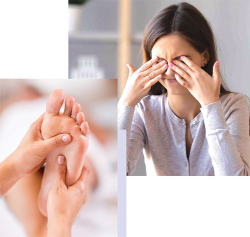එනම් ඇස් දැවිල්ල, බඩ දැවිල්ල, ඇඟ දැවිල්ල, අත් සහ පතුල්වල දැවිල්ල යන රෝග ලක්ෂණ ද ඇතැමුන්ට පාදයේ උලකින් අනින්නාක් මෙන් වේදනාවක් දැනේ. විශේෂයෙන් උදෑසන අවදිවීමෙන් පසුව කෙටි වේලාවක් යනතුරු ඇඳෙන් බැස ඇවිද ගැනීමට නොහැකිව වේදනා සහිත තත්ත්වයක් ඇති වන අතර අඩි කිහිපයක් ඉදිරියට යාමෙන් පසු සුළු මොහොතකින් වේදනාව අඩුවීමේ ස්වාභාවයක් පවතී. මෙම රෝගය තිබෙන රෝගීන් බොහෝ දෙනකු පවසන්නේ ඔවුන්ට වැඩි වශයෙන් මෙය ඇති වන්නේ නිදාගෙන නැඟිටීමෙන් පසුව බවයි. මෙකී රෝග ලක්ෂණ සහිත නම් නිශ්චිතවම තම රෝගී තත්ත්වය විනිශ්චය කර ගැනීමට සුදුසුකම්ලත් වෛද්යවරයකු හමු වී තම රෝග ලක්ෂණ ඔස්සේ රෝගී තත්ත්වය හඳුනා ගැනීමට හැකිය.