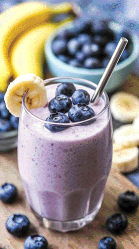 ආමන්ඩ් කිරි, බ්ලූබෙරි සහ වැනිලා එකතු කර හොඳින් බ්ලෙන්ඩ් කර ගන්න. අවශ්ය නම් පමණක් වතුර ස්වල්පයක් එකතු කරගන්න.