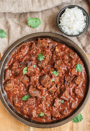 පියන අැර ඉස්ම ගතිය අඩු නම් තව වතුර ස්වල්පයක් එකතු කර නැවත ටික වෙලාවක් කලවම් කරගන්න. අවසානයට රවුම් හැඩයට කපා ගත් ලොකු ලූනු, මාළු මිරිස් සහ තක්කාලි මේයට එකතු කරගෙන රස අනුව ලුණුත් එකතු කර ටික වෙලාවක් හොඳට කලවම් කරගන්න. දැන් ළිප නිවා භාජනයේ තියෙන රස්නෙන්ම ටිකක් තැම්බෙන්න හරින්න.