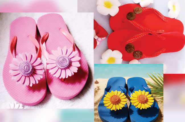 රබර් සෙරෙප්පු යුගලයේ අග කොටසේ විවරයෙන් රිබන් එක මතුකරගෙන ගැට ගසා ගන්න.