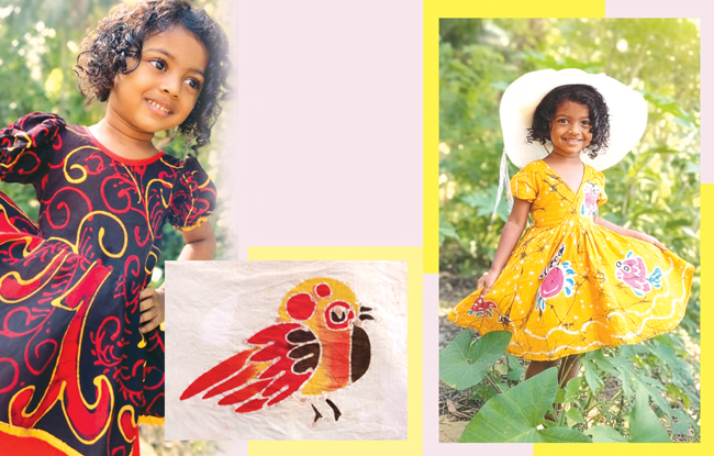 ඔබ නිතර දකින බතික් සාරි, ගවුම් සහ හැට්ට වෙනුවට කුඩා දරුවන්ගෙ ඇඳුම් නිර්මාණය කිරීමට පුංචි අදහසක් ලබා දීමට මෙවර තරුණී නුග සෙවණ සුසංයෝගයෙන් බතික් කලාව ගෙන එනවා.