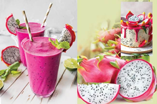 ඩ්රැගන් ෆෘට් මද අරගෙන එයට කෙසෙල් ගෙඩියක්, යෝගට් කෝප්ප බාගයක්, පොල් කිරි හෝ සාමාන්ය කිරි කෝප්ප භාගයක් ගෙන මෙය හොඳින් මිශ්ර (බ්ලෙන්ඩර්) කර ගන්න. පසුව එය වීදුරුවකට දමාගෙන අයිස් කැට, මී පැණි එකතු කරන්න.