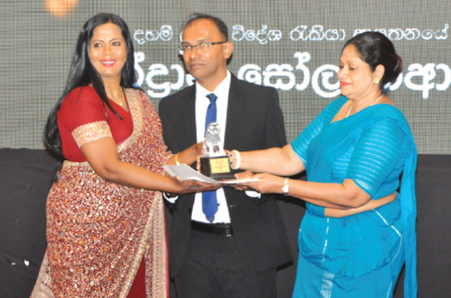 ශ්රී ලාංකීය අභිමානය ලොව පුරා විහිදුවාලීමට අපිරිමිත සේවාවක් කරන පිරිස ඇගයීම වෙනුවෙන් සරසවි විශ්ව ගම්මානය විසින් සංවිධානය කරන ලද සරසවි සම්මාන උලෙළ කොළඹ බණ්ඩාරනායක අනුස්මරණ ජාත්යන්තර සම්මන්ත්රණ ශාලාවේදී පසුගියදා පැවැත්විණි. එහිදී හොඳම විදේශ රැකියා ආයතනය වෙනුවෙන් හිමි සරසවි අබිමන් සම්මානය, වසර 22ක් පුරා මහජන විශ්වාසය හා ගෞරවය දිනා ඇති ගණේමුල්ල දහම් ලංකා විදේශ රැකියා ආයතනයේ අධිපතිනි ඉන්ද්රානි සෝලංගආරච්චි මහත්මිය වෙත එම උත්සවයේ ප්රධාන ආරාධිත අමුත්තෙකු ලෙස සහභාගී වූ ශ්රී ජයවර්ධනපුර විශ්වවිද්යාලයේ දේශපාලන විද්යා අංශයේ අංශාධිපතිනි මහාචාර්ය විශාඛා සුරියබණ්ඩාර මහත්මිය අතින් ලබා ගත් අයුරු