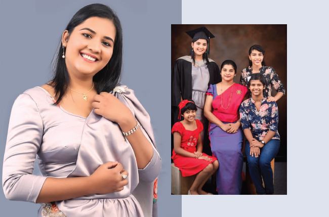 ඇත්තටම මගේ මේ ගමන පිටුපසත් ඔහුගෙන් ලැබෙන සහයෝගය නිහතමානීව සිහිපත් කළ යුතුමයි. තමන්ගේ උපන් පවුල වගේම, විවාහයෙන් පස්සේ පවුලට අලුතින් එකතු වන අයත් මේ ගමනේදී එක වගේම ශක්තියක් වෙනවා නම්, ඕනෑම අභියෝගයක් ජය ගැනීම කාන්තාවකට අපහසු දෙයක් නෙමෙයි. පවුලේ සහ සහකරුගේ ඒ ආදරණීය අත්වැල මගේ සාර්ථකත්වයේ රහසයි.