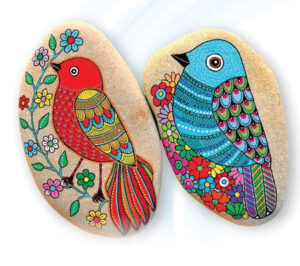 බලන්න මේ විසිතුරු නිර්මාණ දෙස. සොබාදහමේ අසිරිමත් නිමවුම් දෑතේ හැකියාවෙන් වටිනා නිර්මාණ බවට පත්වී ඇති අන්දම හරිම අපූරුයි නේද? මේ සඳහා ඔබට අවශ්ය වන්නේ විවිධාකාර හැඩයේ සුමට ගල්, නිල්, රතු, කොළ, කහ වැනි වර්ණ සහ පින්සල් කිහිපයක් පමණි. ලොකු කුඩා විවිධ ප්රමාණයේ, විවිධ හැඩයේ ගල් කැබලිති ඉතා සියුම්ව වර්ණ ගන්වා හැඩති මල් ලියකම්, අලංකාර කැටයම් මෙන්ම පුංචි පුංචි දසුන්වලින් අලංකාර කර ඇත.