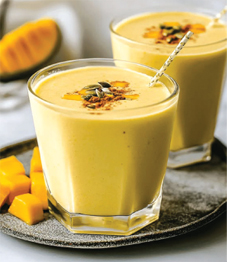 අඹ කුඩා කැබලිවලට කපා ගන්න. පසුව යෝගට්, අයිස් කැට, කැබලි කරගත් අඹ සහ සීනි එක් කරගෙන හොඳින් බ්ලෙන්ඩර් කරගන්න. අවසානයට එයට කුරුඳු කුඩු දමා මිශ්ර කර, ඒ මතට වියළි මිදි සහ කජු එක් කර පිළිගන්වන්න.
