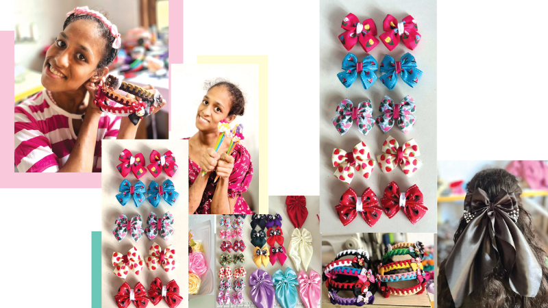ඇය විවිධ මෝස්තරයේ කොණ්ඩාකටු ආදිය කාන්තාවන්ට, ගැහැනු දරුවන්ට හෝ යුවතියන්ට වඩාත් සුදුසු මෙන් ම අලංකාරයක් එක් කරන නිර්මාණ සිදු කරයි.