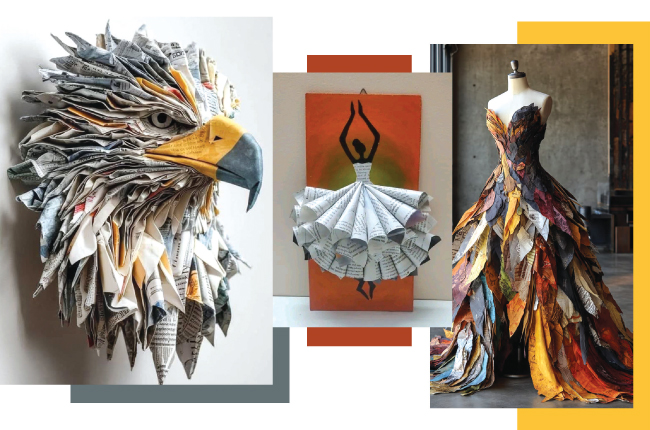 ඇත්තෙන්ම, අප එදිනෙදා ඉවතලන පත්තර කොළ සහ කාඩ්බෝඩ් යනු අපූර්ව නිර්මාණ බිහි කළ හැකි වටිනා අමුද්රව්යයන්ය.