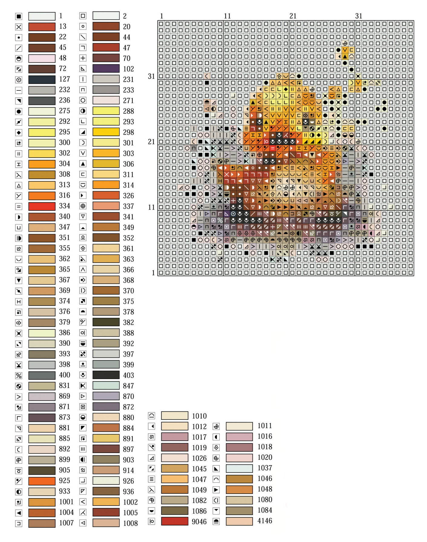 මෙම නිර්මාණය අඟල් 2.8 x 2.8 ප්රමාණයේ නිර්මාණයකි. එහෙත් ඔබට කැමැති ප්රමාණයට සකසාගත හැකියි. ඔබ අඟලට කොටු 14ක් ඇති අයිඩා රෙද්ද භාවිත කරන්නේ නම් හෝ අඟලට කොටු දහයක් හෝ 11ක් ඇති රෙදි භාවිත කරන්නේ නම් නිර්මාණයේ ප්රමාණය තව විශාල වේ. ඒ නිසා රෙද්දේ ඇති අඟලට කොටු ප්රමාණය අනුව නිර්මාණයේ ප්රමාණය වෙනස් වේ. කෙසේ වෙතත් නිර්මාණය රාමු කර ගැනීමට අවශ්ය ලෙස ඉඩ තබා රෙදි කොටස කපාගත යුතුයි. ඒ සඳහා වටේට අඟල් 2ක් හෝ 3ක් ඉඩ තබා රෙදි කොටස කපාගන්න. නැත්නම් නිර්මාණය මැසුවාට පසු රෙදි කොටස කපා ගන්න. කොටු 10න් 10ට නූල් ඇදගැනීමෙන් මැසීම පහසු වේ. කොටු ගණන් කර මසන්න. නැත්නම් නිර්මාණය හරි මැද සිට මැසීම අරඹන්න. රෙද්දේ අඟලට ඇති කොටු ප්රමාණය අනුව භාවිත කළ යුතු නූල් පොටවල් ප්රමාණය ද වෙනස් වේ. අඟලට කොටු 14ක් නම් නූල් පොටවල් 2ක් සෑහේ. අඟලට කොටු 11ක් නම් නූල් පොටවල් 4ක් හෝ 6ම භාවිත කරන්න.