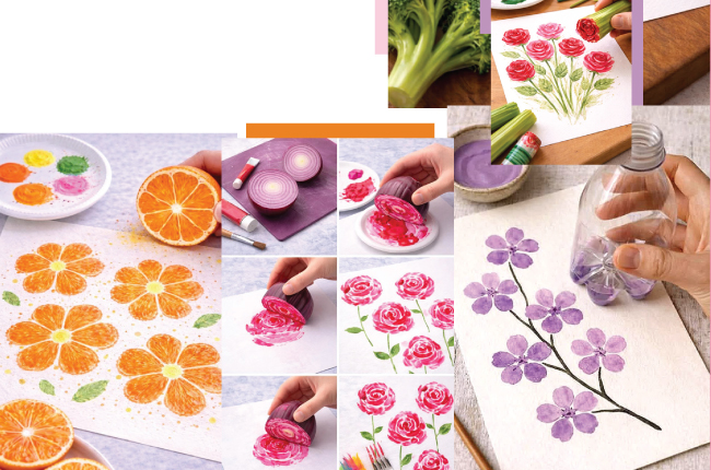 එළවළු සහ පලතුරු කැපූ විට ඒවායේ ඇති ස්වාභාවික හැඩතල මුද්රණ (Printing) ශිල්පය සඳහා ඉතා කදිමය.