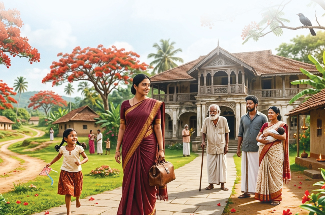 ඇය ආපසු නිවසට යන විට, ඇගේ කුඩා දියණිය මිදුලේ සෙල්ලම් කරමින් සිටියාය. දියණියගේ මුහුණේ තිබුණේ සුරන්ගේම සේයාව වුවත්, ඇගේ ගතිගුණ හැඩගැසී තිබුණේ ආරාමයේ ශාන්ත බවෙනි.